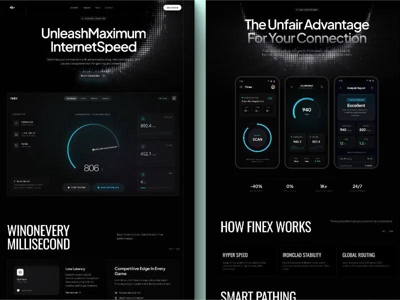 Шаблон лендинга Finex Internet Optimizer. Современный дизайн для оптимизации интернет-трафика. Идеально для IT-компаний, сервисов.