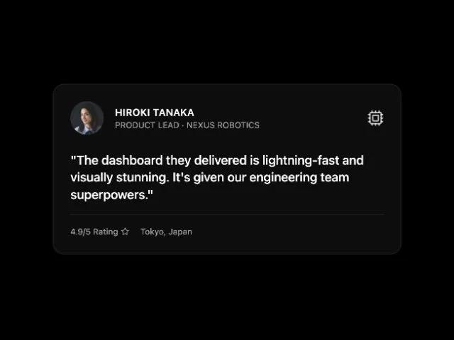 "The dashboard they delivered is lightning-fast and visually stunning. It's given our engineering team superpowers."
