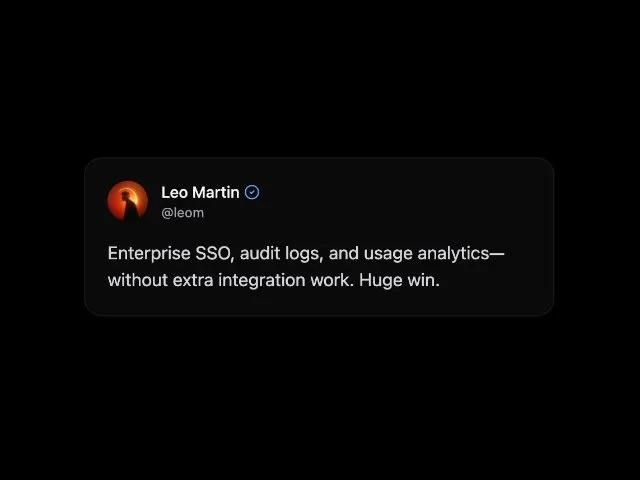 Enterprise SSO, audit logs, and usage analytics—without extra integration work. Huge win.