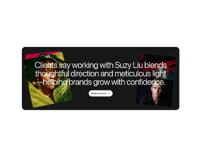 Clients say working with Suzy Liu blends thoughtful direction and meticulous light—helping brands grow with