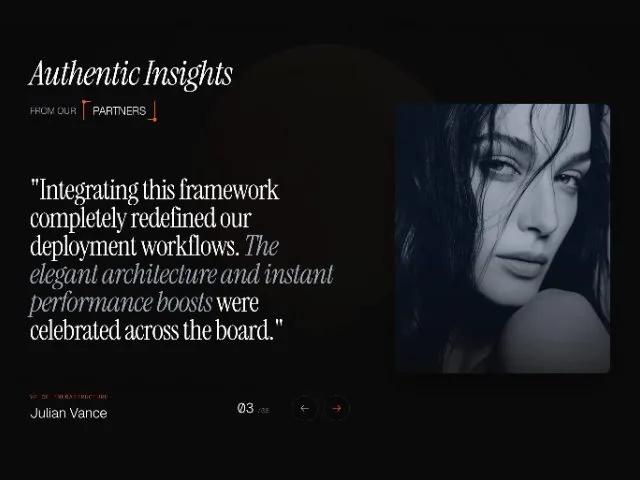 "Integrating this framework completely redefined our deployment workflows. <span class="text-gray-400 italic">The elegant architecture and instant performance boosts</span> were celebrated across the board."