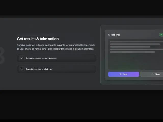 Receive polished outputs, actionable insights, or automated tasks—ready to use, share, or refine.